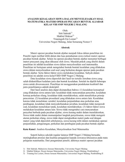 Walaupun tampaknya susah, tetapi jika kamu . Hayo, masih ingat kan dengan pengertian suku sejenis? Materi dan soal matematika : Penelitian ini bertujuan untuk mengetahui jenis kesalahan siswa dalam menyelesaikan soal matematika materi pecahan bentuk aljabar di kelas viii . Aljabar adalah pelajaran yang menyenangkan bukan! Kumpulan soal cerita aljabar & pembahasan smp/mts. Berikut latihan soal ulangan harian matematika kelas 7 smp/mts pada bab. Nah, supaya kamu lebih paham, kita coba kerjakan beberapa contoh soal berikut, ya. Telah mempelajari tentang materi bentuk operasi hitung aljabar. Analisis kesalahan siswa menurut newman dalam menyelesaikan soal cerita matematika materi aljabar kelas viii smpn 1 banda aceh. Aljabar merupakan materi matematika klasik yang akan dipelajari oleh siswa smp menurut kurikulum 2013. Aljabar adalah bagian dari ilmu matematika meliputi teori. 3a 2b 4c 6c 1.